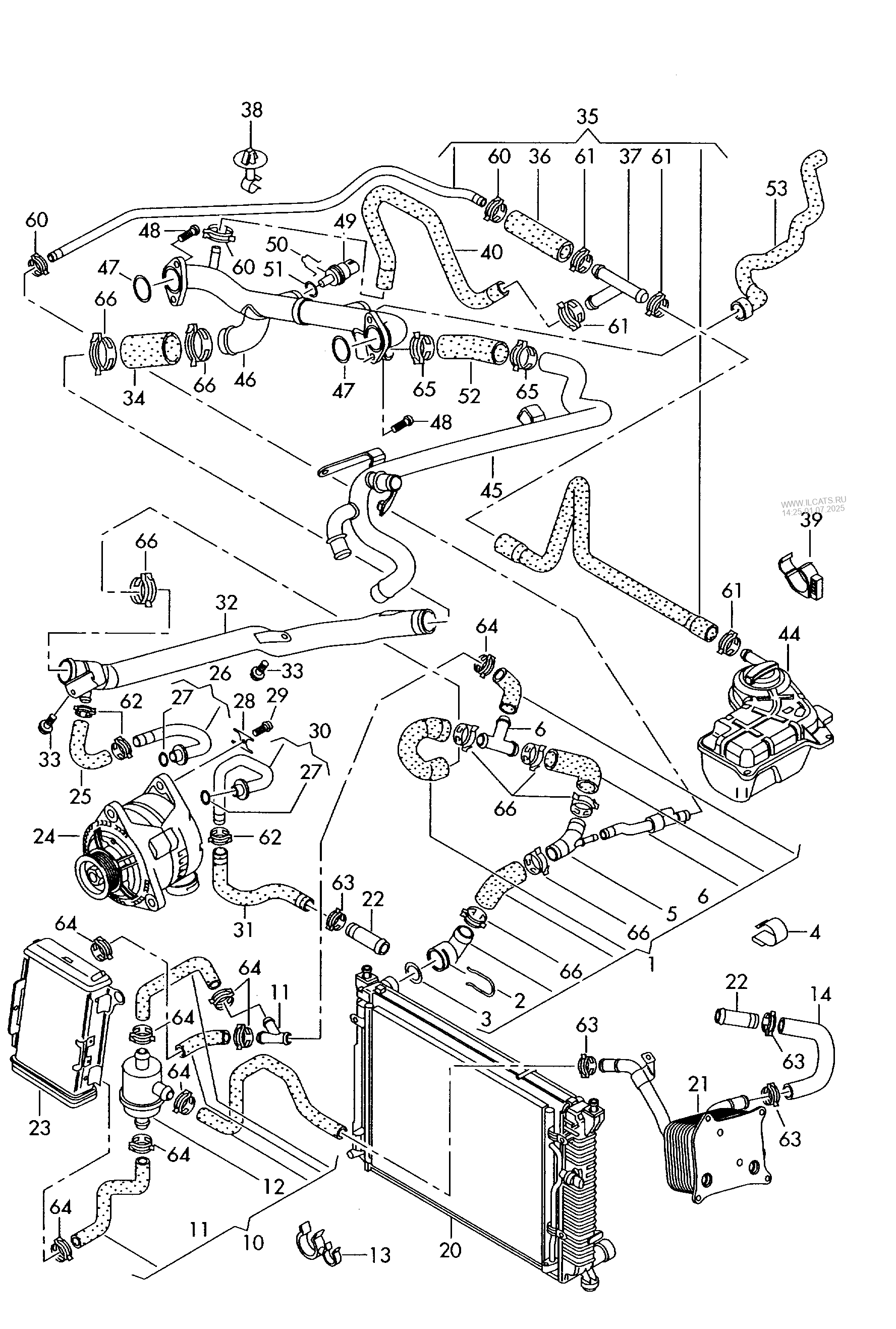 Audi a4 cooling system diagram. Coolant hose with quick release coupling.